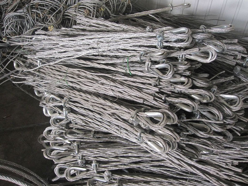 鋼絲繩錨桿選用16mm的鋼絲繩,其直徑是普通鋼絲繩的兩倍。錨桿足夠結實,抗拔力可達80KN以上。鋼絲繩錨桿通過固定側拉支撐繩來起到加固邊坡防護網(wǎng)系統(tǒng)。